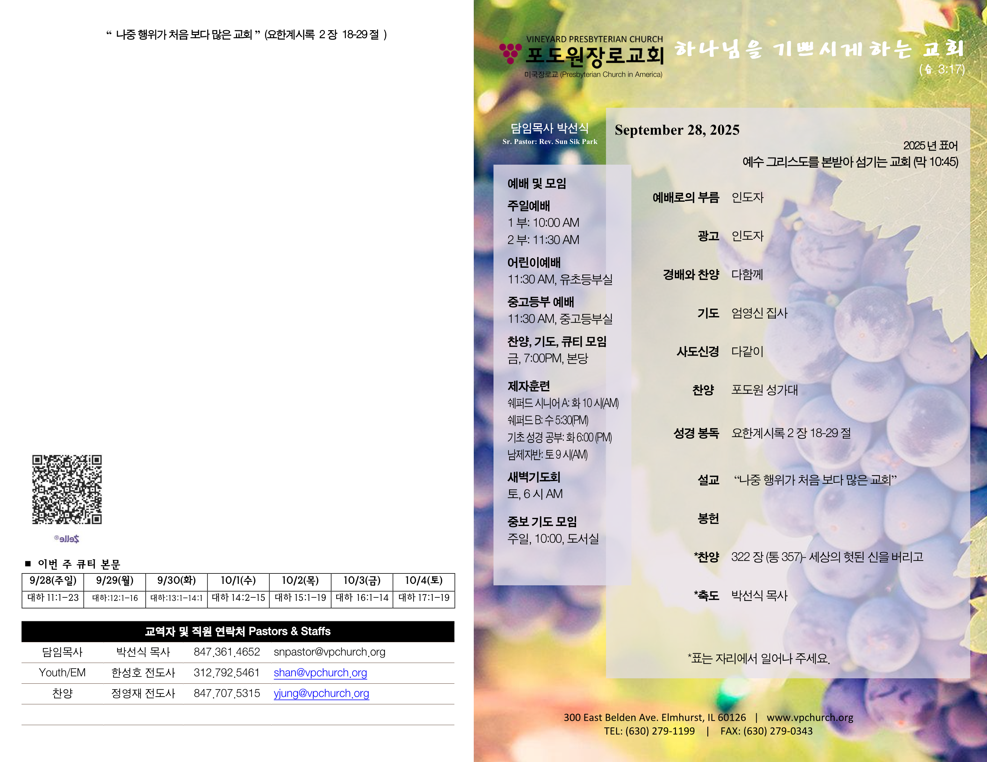 주보 주보 2025년 9월 28일 주일예배 Author vpc-master Date 2025-09-27 17:11 Views 51 Like 0 Unlike 0 Print « 2025년 9월 14일 2025.10.05 주일 예배 » List Reply Edit Delete Powered by KBoard